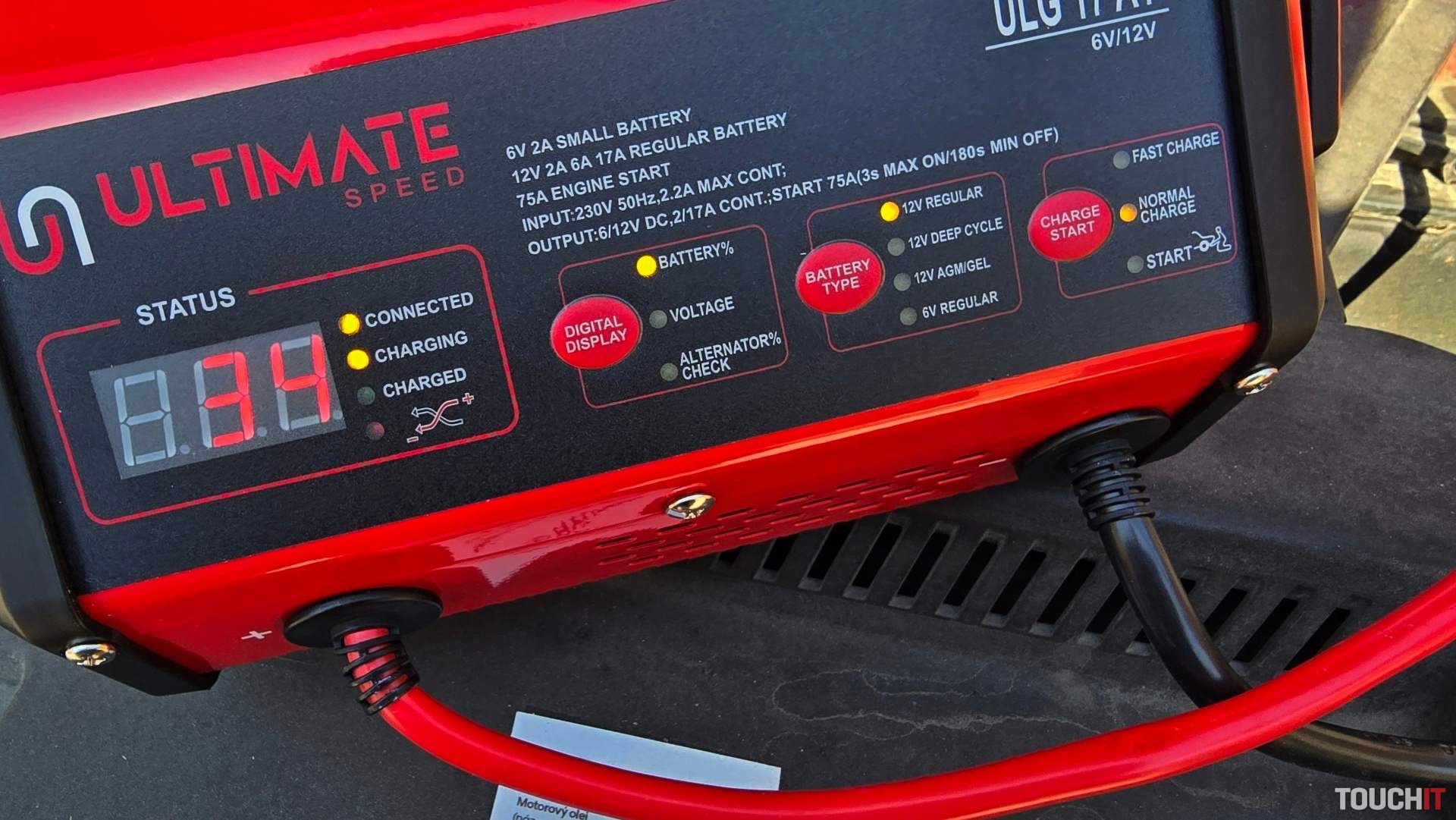 Súčasťou dodávky je samotná nabíjačka, nabíjacie káble (červený a čierny), návod a náhradná poistka. Káble pritom pripnete na batériu, zapnete nabíjačku do zásuvky a na palubnej doske stlačíte tlačidlo na naštartovanie procesu nabíjania. Nabíjačka sama skontroluje, aký je to typ batérie a začne nabíjanie.