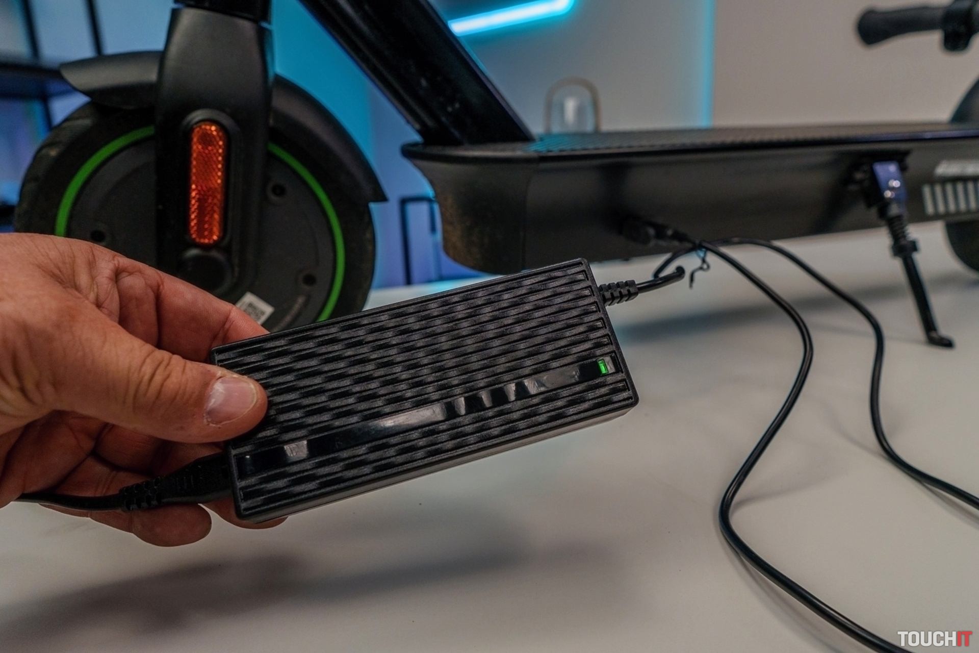 Na túto kolobežku sme si zvykli a používame ju na jazdu do práce i z práce. Jazdíme vždy pri maximálnej podpore a dojazd 10 km v tomto režime vyhovuje. Napájací zdroj je príjemne malý a ak ideme na dlhšiu cestu, berieme si ho so sebou. Jej výhodou je, že sa s ňou dá jazdiť aj počas dažďa.