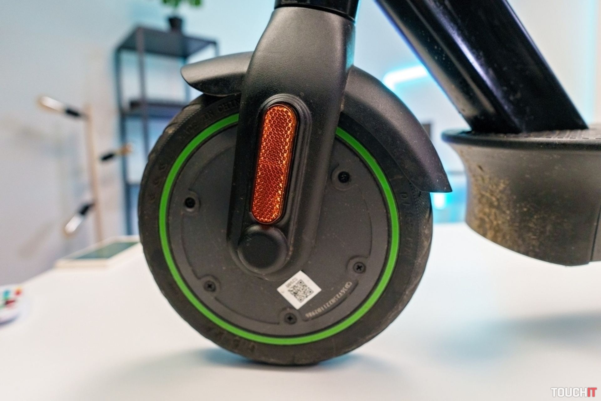 Výkonný nábojový motor 36 V/250 W-400 W v prednom kolese pracuje spoľahlivo a s jeho pomocou sa dostanete aj do kopca so stúpaním do 10 %. Udávaná maximálna hmotnosť jazdca je do 100 kg, to sme počas testu mierne prekračovali.