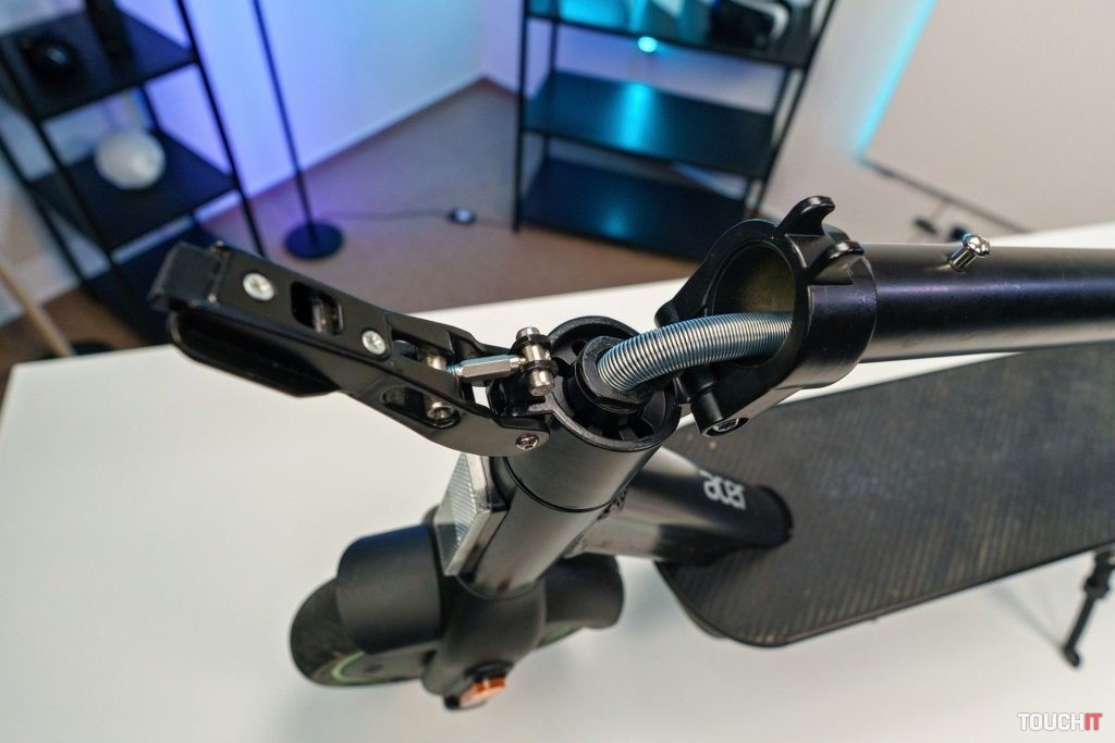 Rukoväť tejto kolobežky je sklopná a pri prenášaní je bezpečne pripevnená k zadnému blatníku. Kolobežku tak zoberiete pohodlne aj jednou rukou a vystúpate s ňou aj po schodoch.