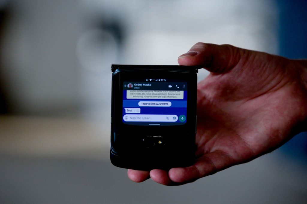 Na prednej strane je dotykový displej s rozlíšením 800 × 600 px. Na ňom je základné menu, s ktorým vybavíte napr. správy na Whatsup, na Facebooku, SMS a pod. Môžete s jeho pomocou aj telefonovať. Budete prekvapení, koľko vecí sa dá takto vybaviť. Telefón pritom vôbec neotvárate, a tak šetríte nielen energiu, ale aj pánt a displej. Výrobca pritom tvrdí, že displej zvládne 200 000 otvorení, čo je viac ako 5 rokov používania. Pri pohybe v teréne sme ho mali zatvorený vo vrecku nohavíc a ak bolo niečo treba, vybavili sme všetko zo zatvoreného stavu. Doma a v práci sme ho mali otvorený a používali sme ho ako klasický telefón. Takto to funguje veľmi dobre a telefón sa veľmi pohodlne nosí vo vrecku. Nie je však dobrá myšlienka, nosiť ho otvorený vo vrecku nohavíc. V popísanom režime potom vydrží batéria s kapacitou 2800 mAh na celý deň štandardného používania. Na razr 5G sa dá spoľahnúť. Je to predsa len klasická motorola so všetkým, čo od nej očakávate. Teda dobrým manažmentom spotreby, svižným chodom a takmer čistým Androidom. Nepokazili to nejakou prebujnenou nadstavbou. Gamestime na potlačenie rušivých notifikácií pre hráčov je k dispozícii.