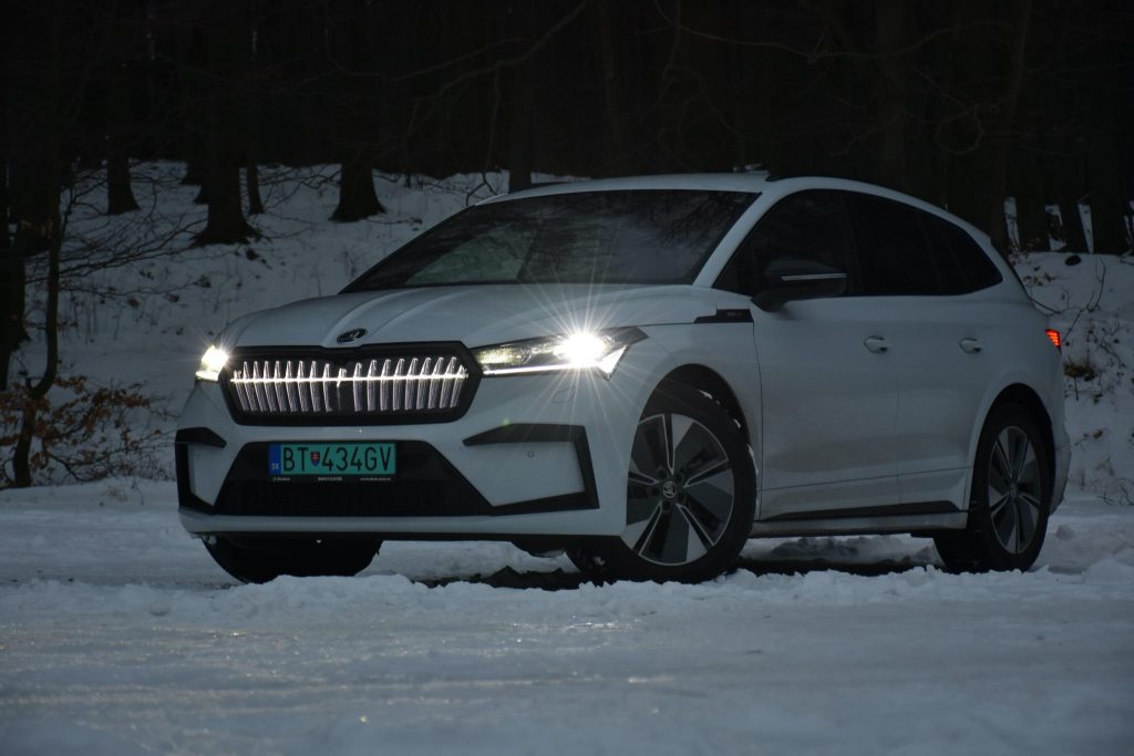 Veľmi dobre! Akurát tá svetlá výška vám toho veľa nedovolí, ale tak toto auto nie je terén koza, no do hôr na lyžovačku alebo ku chate vás vyvezie bez váhania. Počas testu som neodolal ani snehovej pokrývke, na ktorej Enyaq v rámci trakcie opäť exceloval a dokonca v režime SPORT + ESC Sport vrtí zadkom ako mladá ľan, takže žiadna nuda, ale slušná zábava.