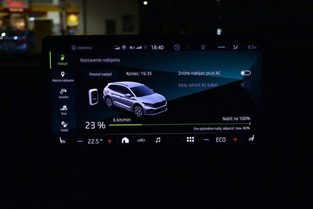 Ideálnym riešením je domáci WallBox (ponúka ho aj Škoda) a využívanie verejných nabíjačiek, čo si už ale treba prerátať a zvoliť vhodný program, napr. od ZSE Drive, nakoľko nie vždy je to lacné. Ceny a programy si viete pozrieť priamo na stránkach ZSE, pričom sa jednoduchý výpočtom z nižšie uvedenej spotreby dostane k sume, ktorú Enyaq iV 80X v priemere spotrebuje na 100km. A akú má kapacitu batérie? Výrobca uvádza 82 kWh, no reálne využiteľná kapacita je o trošičku menšia – presnejšie je to 77 kWh. Mirko, a prečo si teda neprešiel viac ako 250 km na jedno nabitie? No lebo nerád chodím na doraz (jedine, že by áno…) a radšej nabíjam pribežne, ideálne pri zostatkovej hodnote v okolí 20%. To robí dobre nie len šoférovi na psychiku, ale aj samotnej baterke, ktorá netrpí ako pes na reťazi.