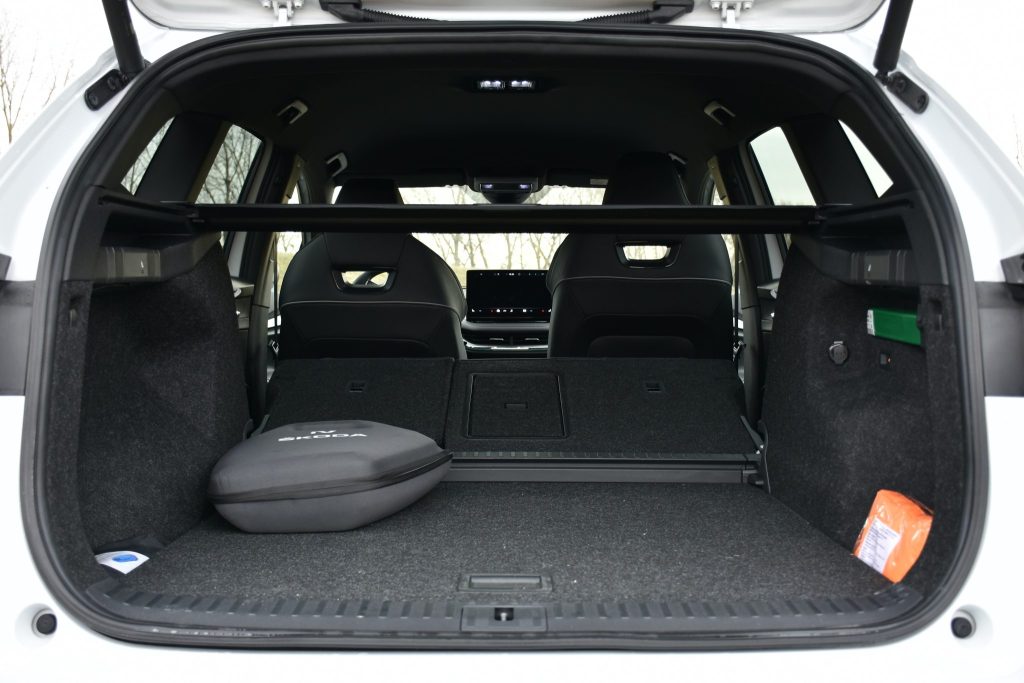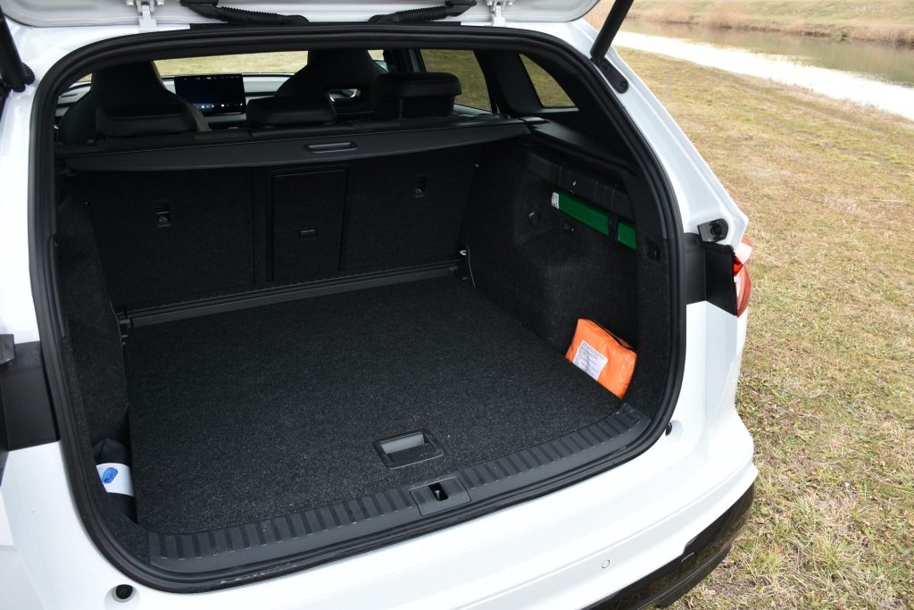 Enyaq ponúka veľmi pekný priestor aj pre zadných pasažierov, ktorí majú k dispozícii všetky komfortné prvky. Je to taká rodinná električka, s ktorou by som na nebál ani dlhších výjazdov.. dovolenka pri mori? S prehľadom! Prekvapila ma ešte jedna drobnosť, ale to je asi otázka výbavy, že tento model nemal výstup na 230V, teda integrovaný menič, čo by som očakával ako základný prvok v každom elektrickom aute. Ale nevadí, lebo iné prvky tu sú, ako napr. sedadlá delené v pomere 40:20:40 a veľmi príjemne tvarovaný batožinový priestor s malou medzi-podlahou, kde sa dajú ukryť nabíjacie káble. V číslach to je takto, základný objem činí 585 litrov a po sklopení operadiel získate 1710 litrov + schodík, čo nie je zlé.