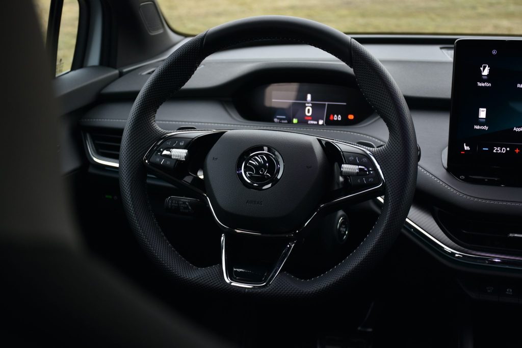 Spomenúť musím aj veľmi podarený a z časti inteligentný systém rekuperácie, ktorú viete regulovať vo viacerých stupňoch manuálne, pádlami pod koženým multifunkčným volantom. Podobne to malo už dávnejšie Mitsubishi, kde to podľa mňa funguje najlepšie a pádla sú tam výborne ovládateľné – no v škodovke to funguje tiež slušne.