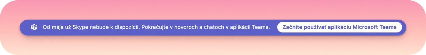 Pokiaľ nechcete používať Microsoft Teams, môžete exportovať svoje údaje zo služby Skype. Musíte tak spraviť do januára 2026. Ak nevykonáte žiadnu akciu, vaše údaje zo služby Skype sa odstránia v januári 2026.