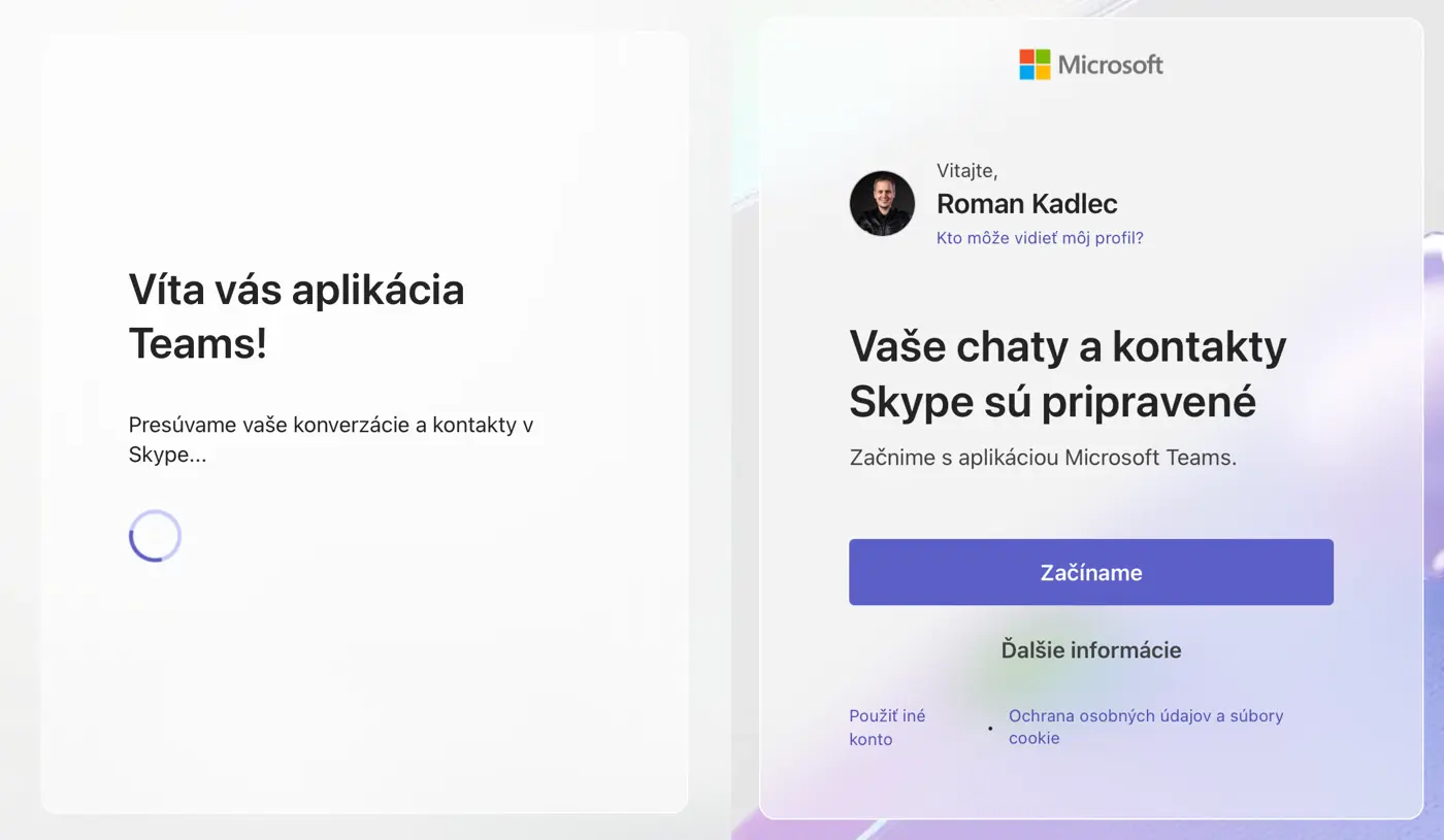 Pokiaľ sa rozhodnete používať službu Teams, automaticky sa presunú vaše kontakty, čety a aj prihlasovacie údaje. Nemusíte si teda vytvárať nový účet. Konverzácie medzi používateľmi Skypu a pracovnými alebo školskými kontami Teams sa však nebudú migrovať.