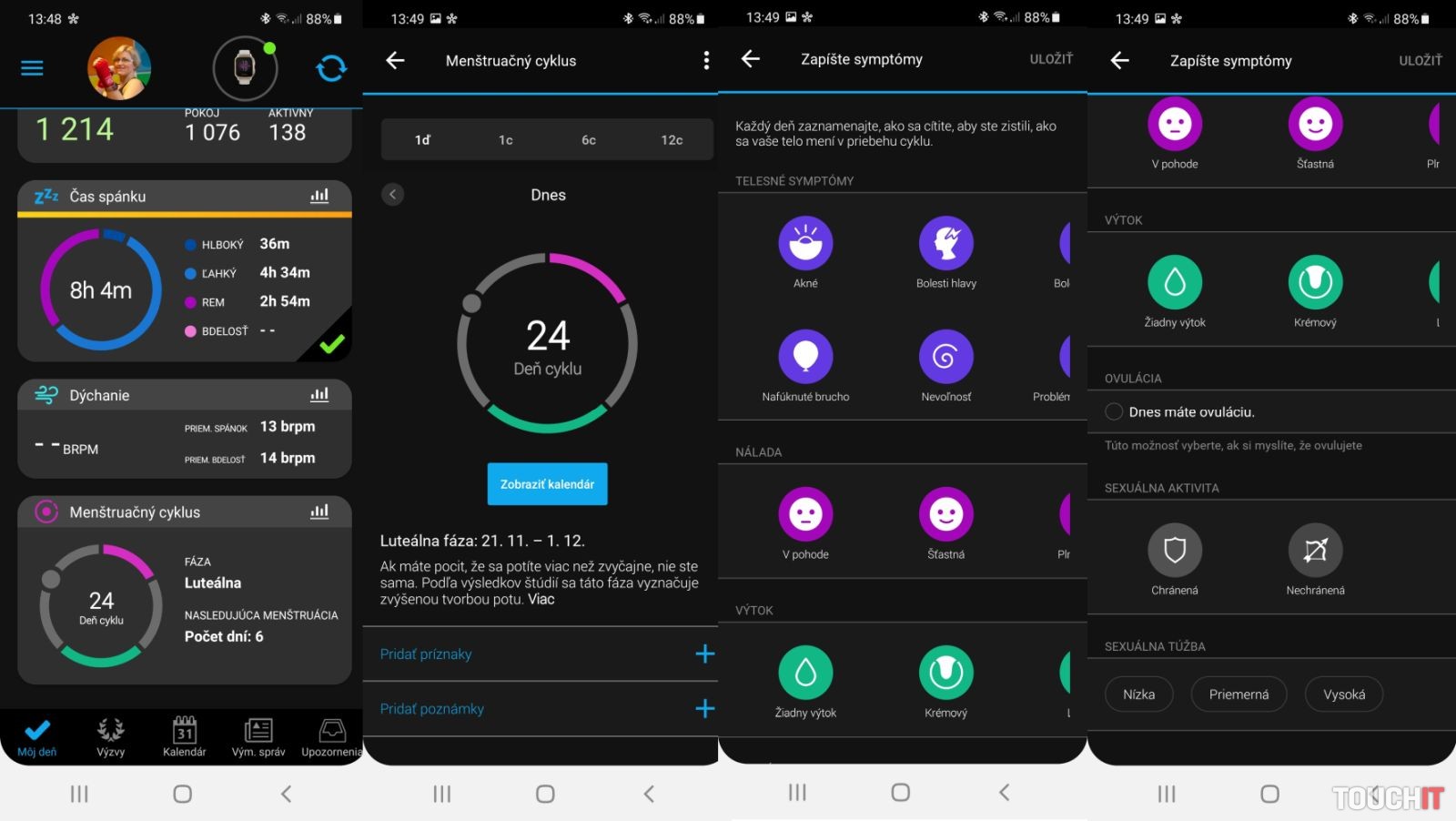 Garmin Connect vám v rámci každej fázy cyklu generuje všeobecné aj športové odporúčania, ktoré môžete využiť v rámci plánovania vašich tréningov, ak pravidelne a intenzívne cvičíte. Je praktické, že tieto odporúčania a informácie sú dostupné aj v slovenskom jazyku.