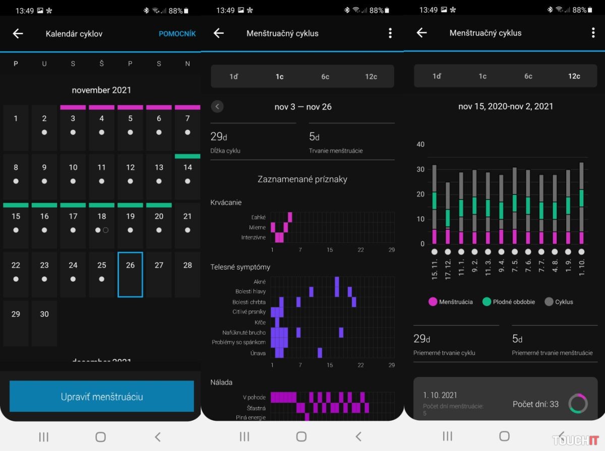 Súčasťou funkcie na sledovanie menštruácie je kalendár cyklov, pomocou ktorého si môžete upravovať menštruáciu tak, aby zodpovedala skutočnosti – ak by vám náhodou meškala alebo ste ju dostali skôr, ako to aplikácia odhadla.