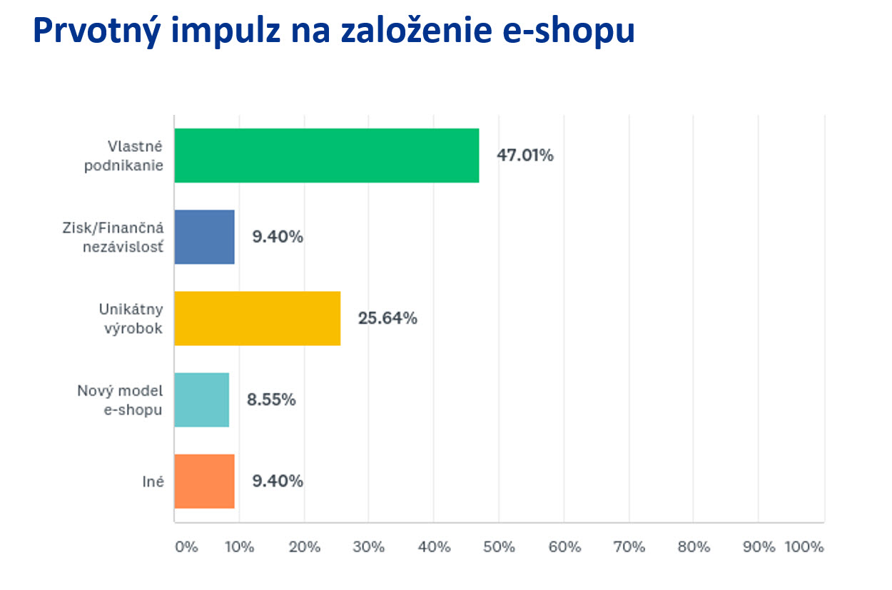Podľa výsledkov tohto prieskumu vznikajú slovenské e-shopy najmä z túžby mať vlastné podnikanie (viac ako 50 % respondentov). S online podnikaním to Slováci myslia vážne, až dve tretiny opýtaných aktuálne zvažujú možnosť expandovať na iný ako slovenský trh. Prekvapivo to nie je český trh, kde majú zákazníci úplne iné správanie ako na Slovensku. Slovenský trh je viac podobný maďarskému alebo rumunskému. Veľmi perspektívny sa zdá byť slovinský trh. Na to, aby slovenský eshop mohol byť v zahraničí úspešný, musí sa v danej krajine tváriť ako domáca firma. To znamená mať domácu adresu, call centrum musí fungovať v lokálnom jazyku. Ani v českom prostredí nie je vhodné, aby hlas v telefóne e-shopu bol v slovenčine.