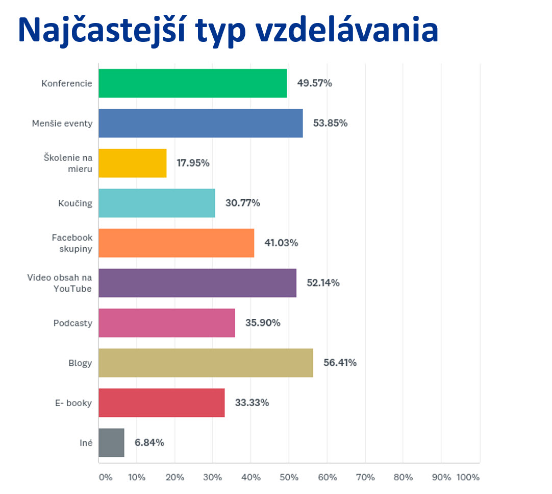 Zaujímavé boli odpovede na otázku, čo považujú prevádzkovatelia e-shopov za zdroj vzdelávania. Sú to blogy a obsah dostupný na Youtube. Video prezentácia tovaru je veľmi dôležitá aj pre nákupov. Mimoriadne rastie v tejto oblasti aj forma podcastu. Ľudia si podcasty prehrávajú napr. pri ceste autom a bude to výrazný prostriedok do budúcna.