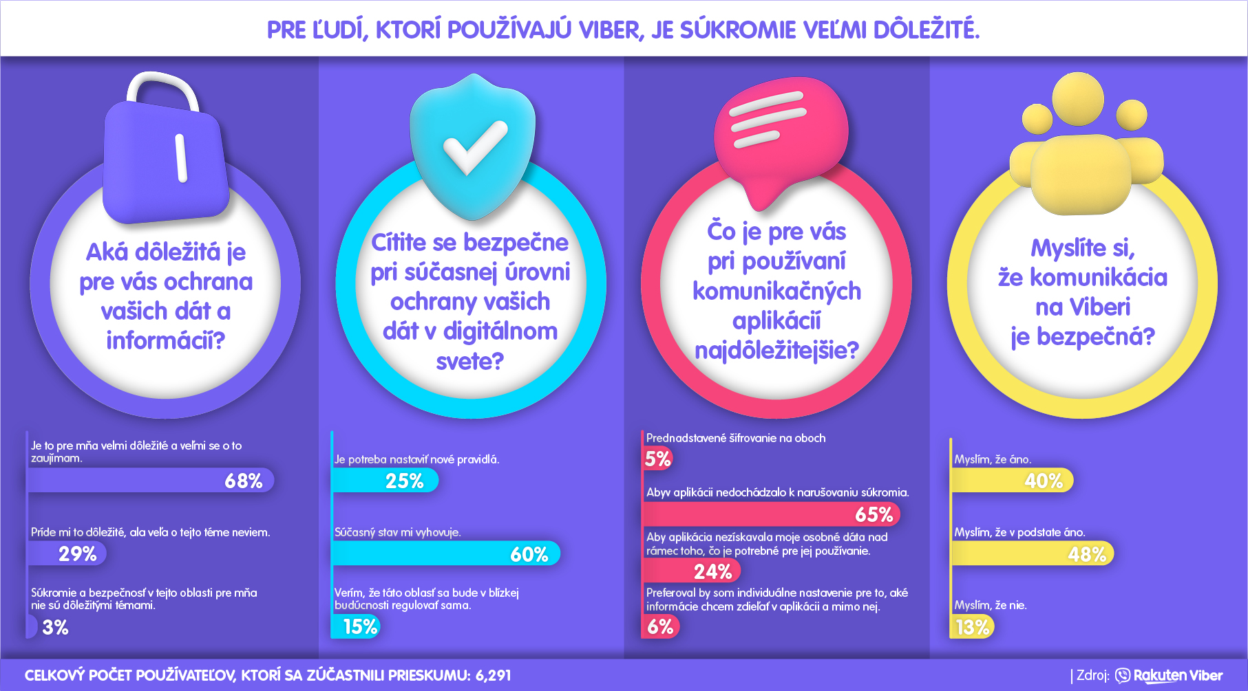 Komunikačná platforma Rakuten Viber usporiadala pri príležitosti medzinárodného Dňa ochrany osobných údajov prieskum v deviatich krajinách medzi viac ako 4 miliónmi svojich používateľov. Hlavnou témou prieskumu bola dôležitosť ochrany osobných údajov v digitálnej komunikácii. Anketa bola realizovaná v oficiálnych komunitách Rakuten Viber na Slovensku, v Českej republike, Maďarsku, Poľsku, Chorvátsku, Srbsku, Slovinsku a Grécku. Jej cieľom bolo zistiť, čo je pre používateľov v digitálnom prostredí dôležité. Anketa zabezpečila rýchlu reakciu používateľov a názor viac ako 170 000 respondentov. Na Slovensku sa prieskumu zúčastnilo viac ako 6 000 používateľov platformy Rakuten Viber.