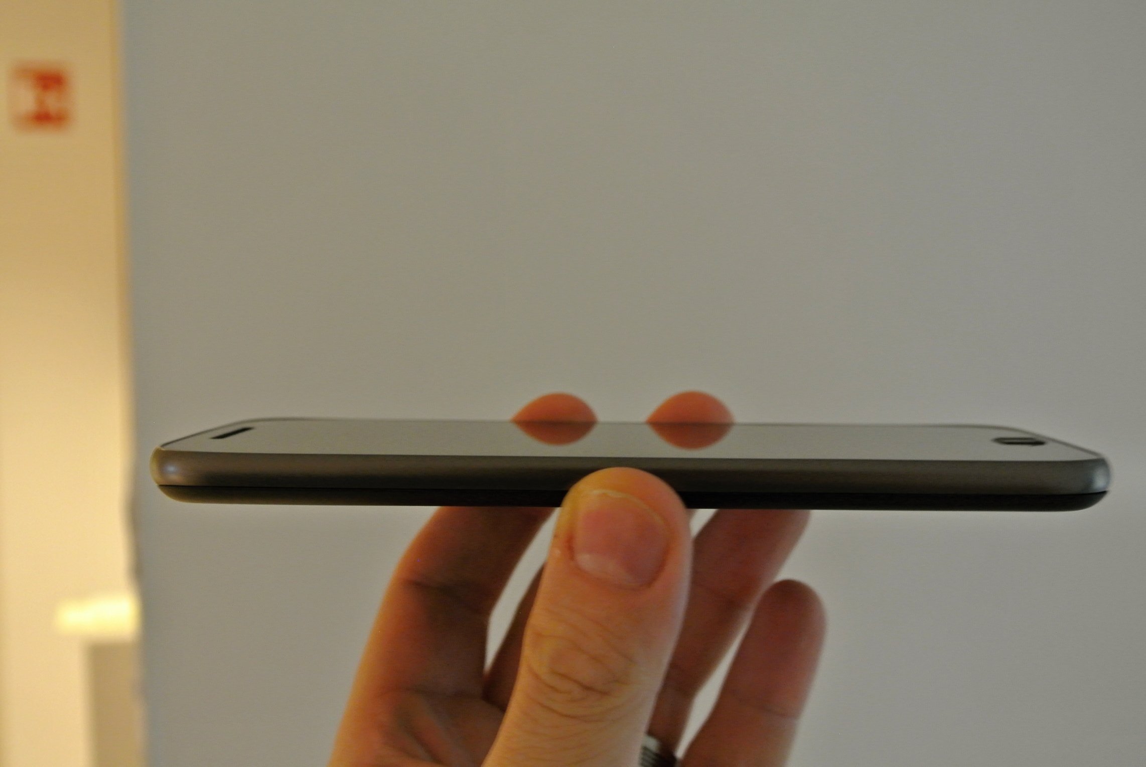 Konštrukčne telefón zaujme hneď na prvý pohľad. Je síce v čiernom vyhotovení so sivým kovovým rámom, no predsa len sa niečím líši. Jeho oblé tvary a minimálna hrúbka ho radia do dizajnovo zameraných telefónov. Stačí ho zobrať do ruky a prekvapí svojou nízkou hmotnosťou.