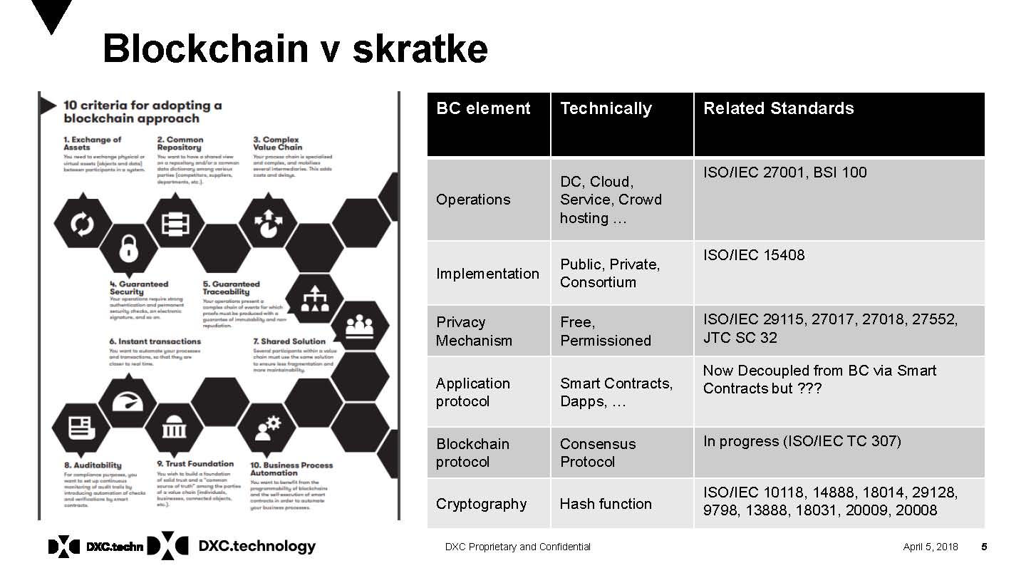 Jednou z výrazných tém, ktoré začínajú formovať aj slovenský trh je napríklad moderná technológia blockchain. Blockchain je možné vnímať ako technologickú platformu, ktorá umožňuje vznik dohody medzi rôznorodými subjektami a nezameniteľný a transparentný záznam o tejto dohode, či už ide o verejný alebo súkromný sektor. Spoločnosti vyvíjajú značné úsilie, aby ho čo najlepšie pochopili, keďže na jeho implementáciu bude treba prekonať množstvo prekážok. ,,Základom pre prijatie konceptu blockchain sú dôvera, transparentnosť a nezmazateľnosť. Bloková reťaz potom dokáže vďaka svojej dostupnosti, ľahkej údržbe a kompatibilite, znížiť náklady na potrebné rozhranie, ktoré automatizuje a nahrádza, ale aj eliminovať možnosti podvodov, ʺ povedal Lukáš Hatala, odborník na problematiku blockchain v DXC Technology.