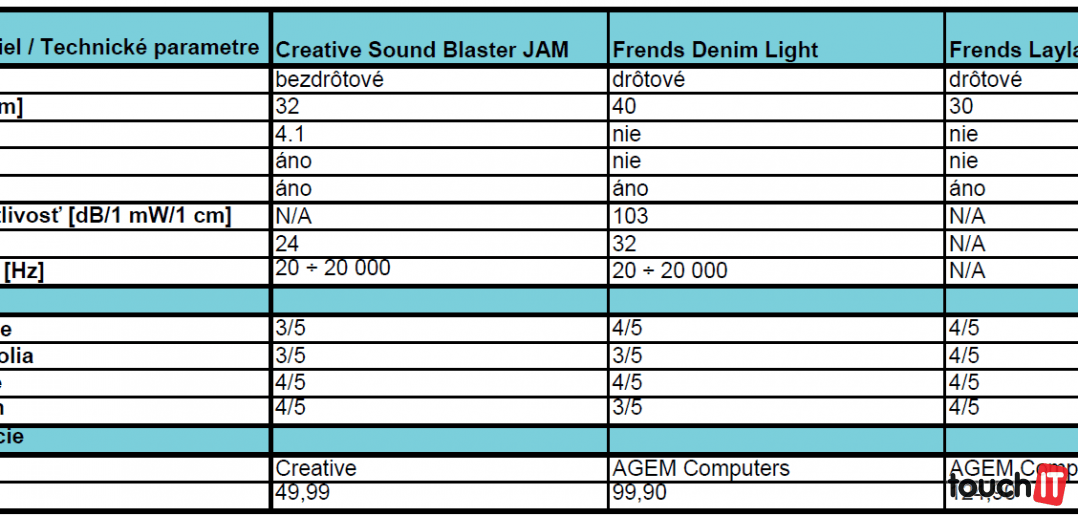 Parametre a hodnotenie testovaných slúchadiel