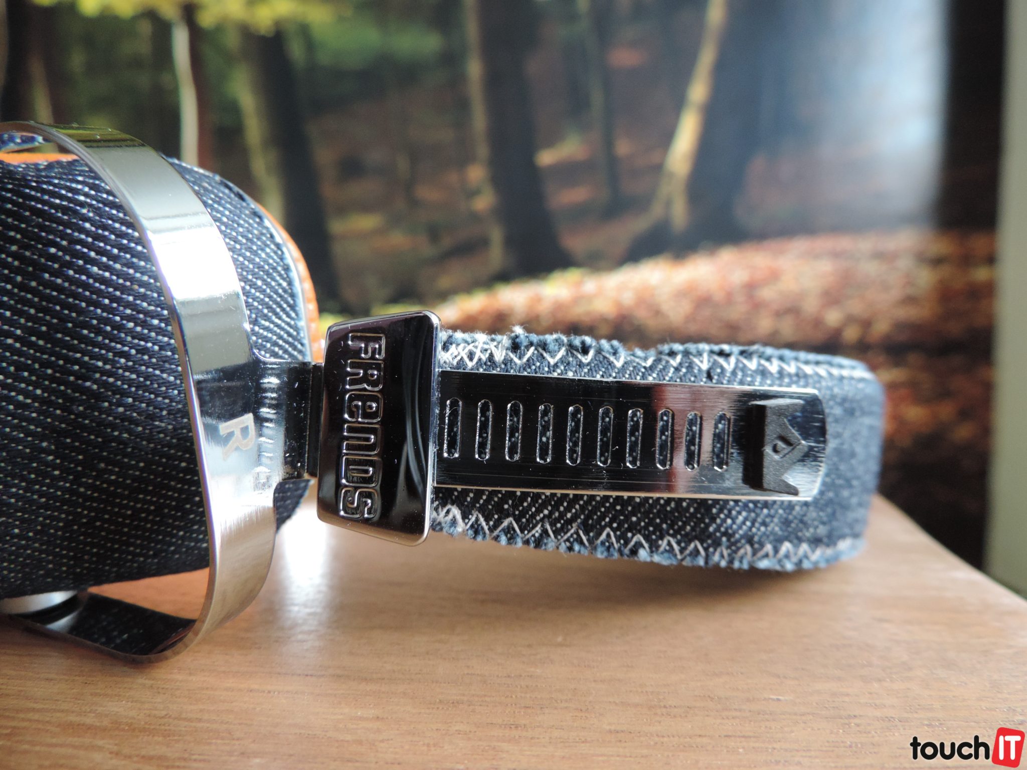 Dizajnová séria slúchadiel pre mužov nesie so sebou niekoľko nezameniteľných prvkov. Tento model ako je už aj z názvu charakteristické, je vyhotovený v štýle džínsov. Konkrétne ide o spojovací most a vonkajšiu stranu mušlí. Slúchadlá sú vyhotovené v štýle s prítlakom na uši, tak ako aj ostatné dva modely v teste. Náušníky sú pokryté dierovanou kožou a pod ňou je pamäťová pena. Je to príjemné na dotyk a dobre sadnú na uši. Chválime tuhšie nastavenie veľkosti spojovacieho mosta. Pri manipulácii so slúchadlami sa nebude meniť jeho veľkosť a pri opätovnom nasadení máte k dispozícii presne tú veľkosť, akú ste si nastavili. Mušle sa nedajú sklopiť a majú len minimálnu vertikálnu korekciu. To ale v praxi nejako pociťovať nebudete. Počas prenášania ich ale nedáte „na plocho“. Polstrovanie na moste chýba, ale je tu látková výplň v rifľovom materiáli. Nepociťovali sme žiadne zvýšené tlaky z oblúka ani na uši cez mušle. V balení je látkou potiahnutý kábel, ktorý sa nezamotáva a sú na ňom aj prvky handsfree. Teda mikrofón a tlačidlá na ovládanie hlasitosti. Aj kvôli konštrukcii je prirodzené, že výrobca použil kábel typu Y. Vzhľadom na „holý“ spojovací oblúk by nemal ako prepojiť ľavú a pravú mušľu. Prekvapením bola pre nás kvalita zvuku. K slúchadlám Frends sme pristupovali s nedôverou. Prvotné obavy z nosenia dizajnovo zameraných slúchadiel sa rozplynuli v prvej minúte po nasadení na hlavu. So zvukom to bolo podobné. Meniče majú priemer 40 mm a zvládnu reprodukovať nízke tóny spolu s ďalšími zložkami. Špeciálne sme si všimli prekreslenie stredov. Pri niektorých testovacích skladbách sme mali pocit zastretosti výšok, no nie je to nič, čo by sa nedalo skorigovať ekvalizérom. Ich zvuk sa nám páčil.