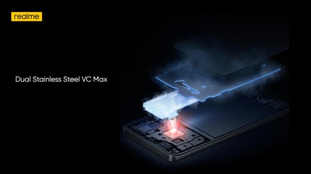 Na maximalizáciu účinnosti rozptylu tepla je Realme GT 2 Explorer Master Edition vybavený dvojitým krytom VC Max z nehrdzavejúcej ocele. Vďaka celkovej chladiacej ploche 4811 mm² sa účinnosť rozptylu tepla telefónu v porovnaní s predchádzajúcou generáciou radu Master zlepšila o 154 %.