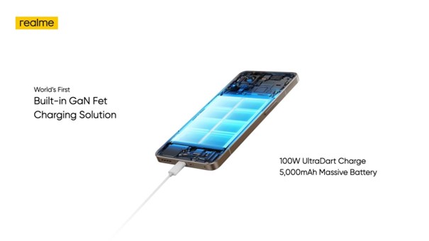 Realme GT 2 Explorer Master Edition má zabudované riešenie nabíjania GaN Fet, ktoré pomáha znížiť odvod tepla z nabíjacej jednotky. Okrem toho je produkt vybavený 100 W nabíjacou jednotkou UltraDart a výkonnou batériou s kapacitou 5000 mAh, ktorá dokáže nabiť batériu z 0 na 100 % za 25 minút.