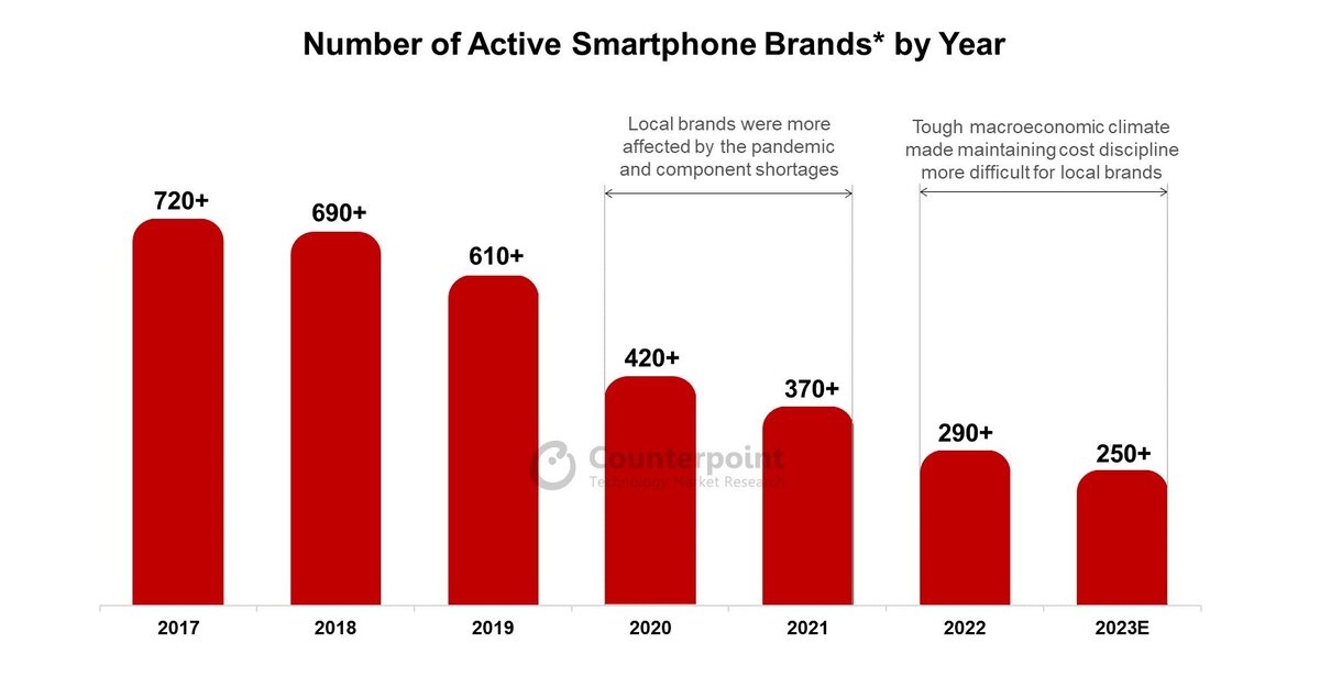 Aj keď svetový trh so smartfónmi ovládajú najmä renomované značky ako sú Samsung, Apple či Xiaomi, tak na trhu sa objavujú aj menší, menej známi výrobcovia. Keď sa pozrieme na graf toho, koľko výrobcov smartfónov sa na trhu nachádzalo ešte v roku 2017, tak ich bolo viac ako 720. V tomto počte sa samozrejme nachádzajú aj menšie značky od lokálnych výrobcov napríklad v Indii, Číne alebo Afrike.