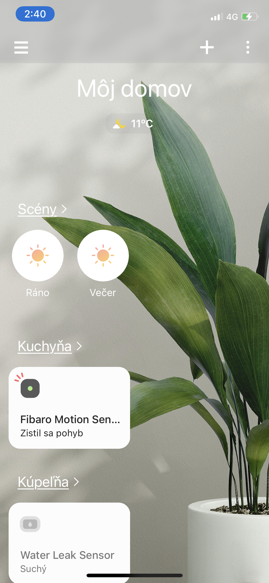 Automatizáciu však nemusíte riešiť len selektívne, môžete si vytvoriť vlastnú scénu, pri ktorej dôjde k aktivácii celého radu akcií a to u všetkých vybraných zariadení naraz. Scény sa následne zobrazujú na úvodnej obrazovke aplikácie, aby ste ich mohli rýchlo aktivovať.