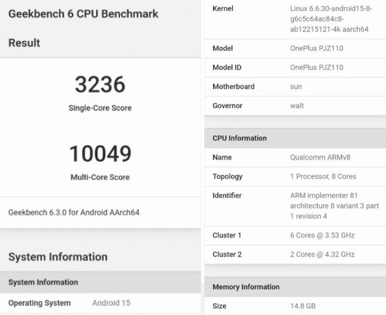 OnePlus 13 sa teraz objavil na porovnávacej platforme Geekbench, čo poskytuje detailný pohľad na čip Snapdragon 8 Gen 4, ktorý bude poháňať aj veľa ďalších vlajkových lodí roka 2025. Podľa záznamu platformy Geekbench čipset Snapdragon 8 Gen 4 dosiahol viac ako 10 000 bodov v multicore teste, pričom jadrá sú usporiadané v dvoch lastroch –  2× 4,32 GHz + 6× 3,53 GHz.