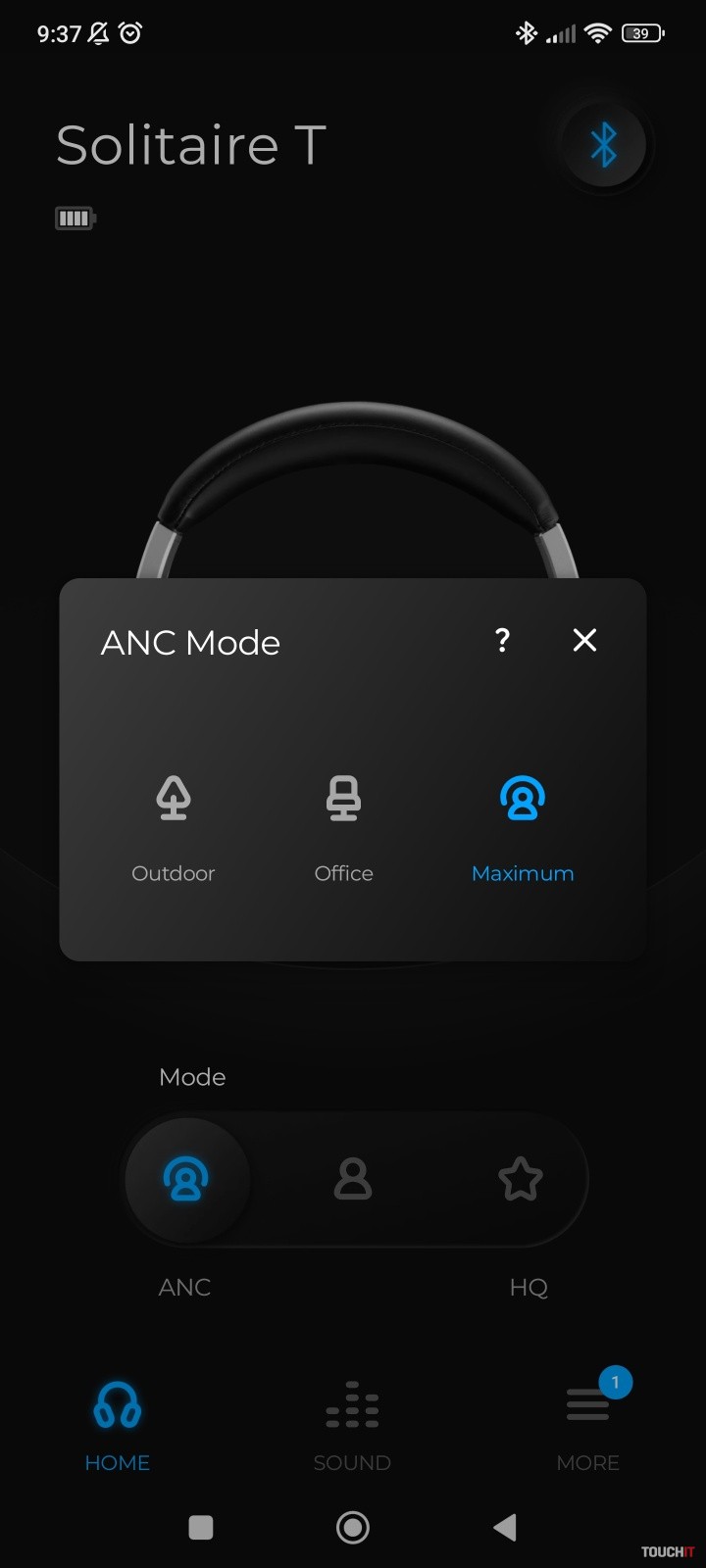 Solitaire T ponúkajú dva režimy ANC. Jeden je určený do vonkajšieho prostredia prípadne hlučnejšieho okolia, druhý sa volá Office a jasne charakterizuje svoj účel. Všetko sa dá prispôsobiť cez aplikáciu, ktorej súčasťou je aj ekvalizér. Vlastný sa nastaviť nedá. Režim Vital sa javil ako najlepší kompromis pri zachovaní basov a zreteľnosti stredných tónov.