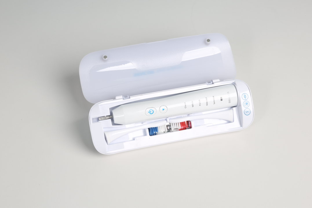 Prínosom sonickej zubnej kefky Sencor je cestovné puzdro, ktoré slúži aj ako nabíjačka a sterilizátor čistiacich hlavíc. Sterilizácia prebieha UV žiarením, ktoré likviduje nežiadúce vírusy a baktérie. V puzdre dokážete súčasne s nabíjaním kefky, sterilizovať až dve čistiace hlavice. Cestovné puzdro musí byť pripojené cez USB kábel ku zdroju energie. Proces sterilizácie trvá 8 minút.