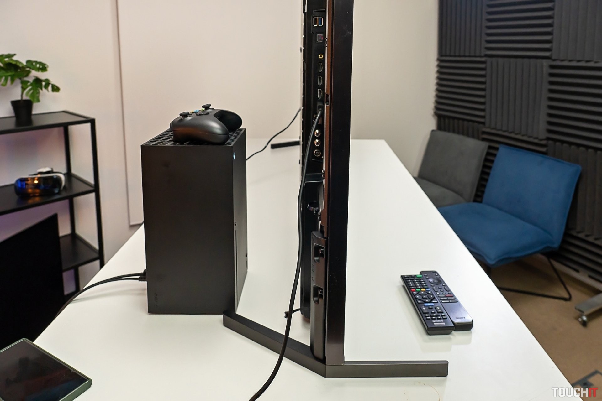 Sony Bravia XR-65X95L určite nie je úzky televízor, na dnešnú dobu je dosť hrubý po celej ploche ale to nevadí. Zadná strane je plastová perforovaná a nemáme obavu o zahriatie televízora ani pri súčasných letných teplotách.
