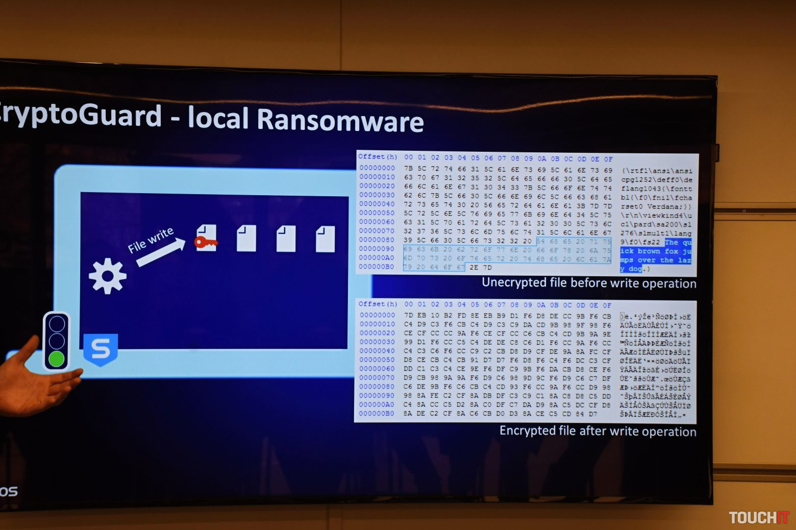 . Rozpozná a zastaví neautorizované pokusy o šifrovanie dát. Zároveň je to ochrana proti tzv. Zero-day hrozbám. Teda takým, na ktoré ešte nie sú antivírusové definície, no už sa šíria po internete. Tretia vlastnosť je čistenie od malwaru. Štvrtá je prevencia, kedy sa analyzuje, čo sa stalo, na akých miestach, aby ochranný softvér vedel reagovať lepšie do budúcna na tento typ hrozby.