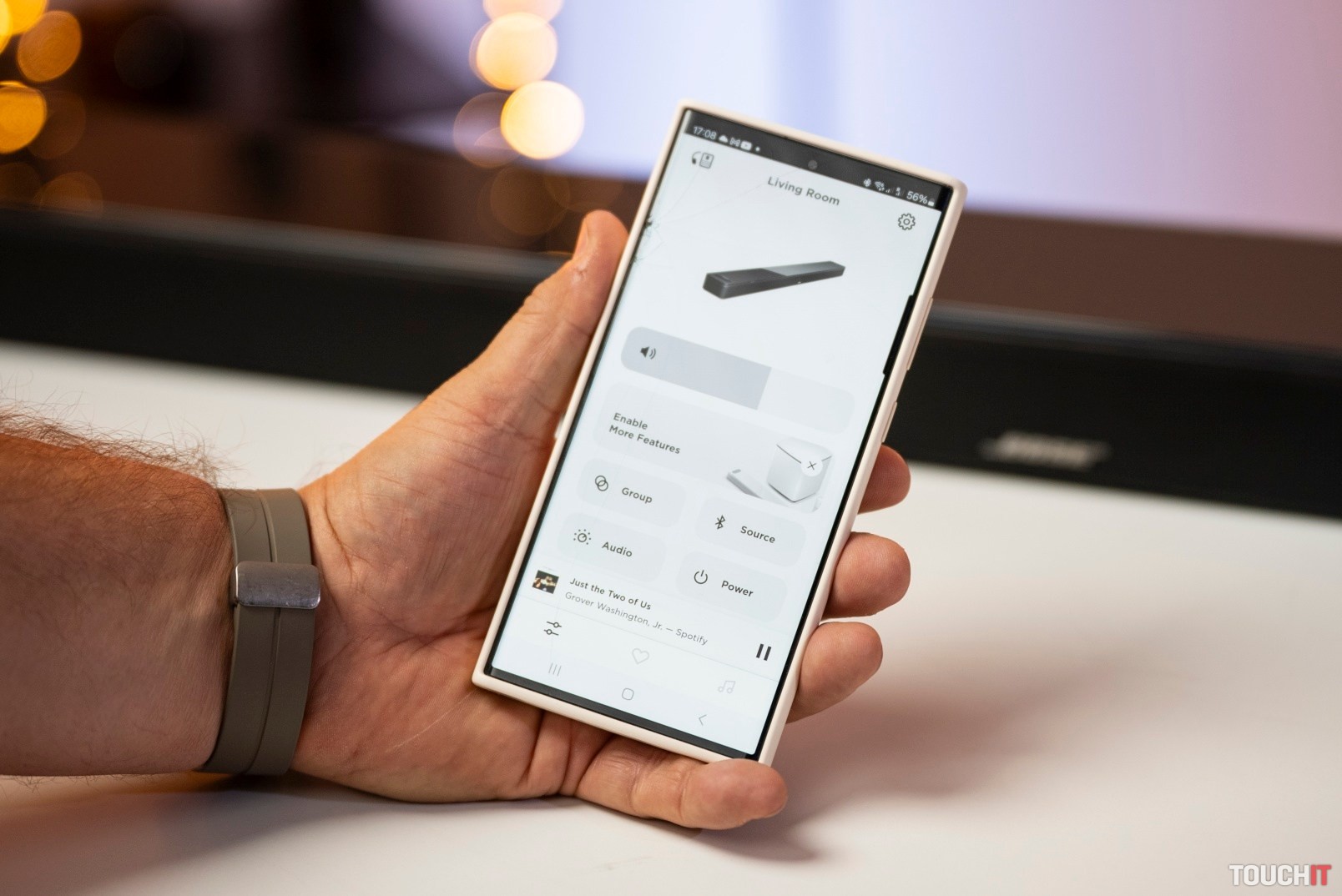 Soundbar potom môže prehrávať hudbu z internetu priamo, my sme pri teste využívali Spotify. Prehrávať hudba sa tu dá aj bez toho, aby ste mali telefón v dosahu Bluetooth. Smartfón s aplikáciou Bose Music funguje len ako diaľkový ovládač, ktorým ovládate výber hudby a nastavujete prehrávanie v jednotlivých zónach- Dá sa využiť multiroom, v v celom dome sa môže napr. prehrávať rovnaká hudba a v každej miestnosti sa dá ovládať hlasitosť.
