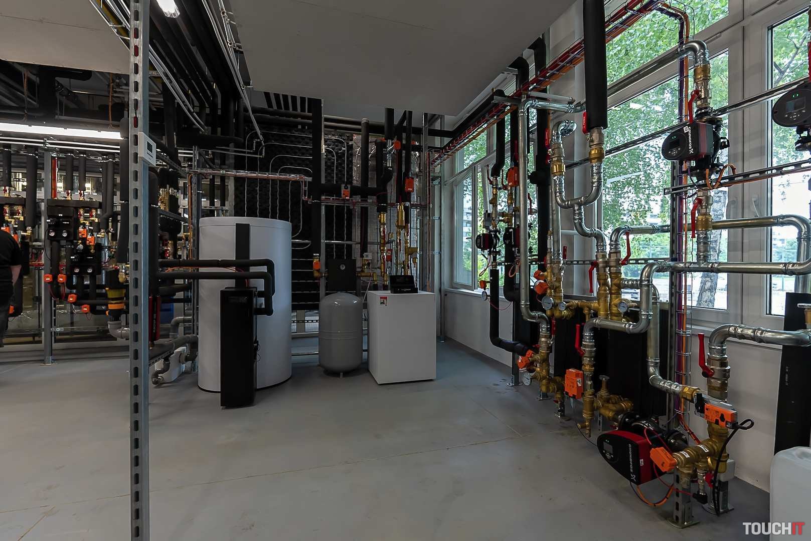Priamo v učebni sme videli aj klasické kotle na plyn vrátane integrácie zásobníka na teplú vodu. Je tu tiež podlahové a stropné vykurovanie, elektrickú energiu vyrábajú aj fotovoltické články umiestnené na streche školy. Videli sme tepelné čerpadlo, ale aj kogeneračnú jednotku na báze palivového článku. Celkovo je v učebni viac ako 10 rôznych technológií na energetické riešenie budov.