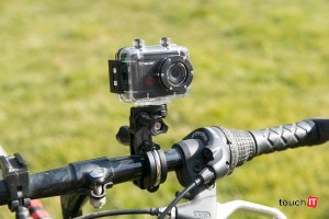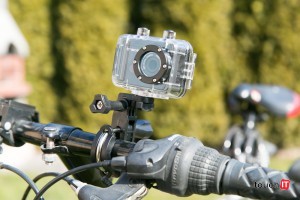 Držiak na bicykel funguje spoľahlivo, dá sa bez nástroja nasadiť na riadidlá a nastaviť smer pohľadu kamery. Kameru rýchlo nasadíte na držiak a aj ju dáte dole, krádeži držiaku ale zabrániť nemožno. Držiak na prilbu sme počas testu nepoužili. Plne nabitá batéria počas nášho testu vydržala na 1 hodinu a 35 minút. Kontinuálny záber kamera rozdeľuje na zhruba polhodinové úseky samostatných video súborov, ktoré na sebe presne nadväzujú.