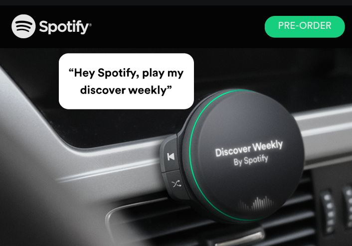 Nasvedčuje tomu registrácia zariadenia vo FCC, aby spoločnosť získala povolenie pre použitie v USA. Staršie správy naznačujú, že Spotify má záujem vyrobiť zariadenie pre vyžívanie v starších vozidlách. To by malo umožniť bezproblémové a hlavne ľahké využívanie hudobnej služby Spotify.Spoločnosť Spotify zatiaľ celú situáciu odmieta komentovať.Včerajšou registráciou vo FCC bol spoločnosti Spotify pridelený špeciálny kód 2AP3D. Spoločnosť tak skutočne môže mať zariadenie, ktoré využíva bezdrôtové siete a musí najprv prejsť schvaľovacím procesom ešte predtým, ako sa zariadenie začne predávať.Od roku 2017 Spotify zamestnáva tím, ktorý pracuje na vývoji zariadenia, ktoré by malo spadať do kategórie definovanej zariadeniami, akými sú napríklad Pebble Watch, Amazon Echo a Snap Spectacles (hodinky, reproduktor a okuliare s kamerou). Začiatkom tohto roka sa objavila pracovná ponuka, kedy chcela spoločnosť Spotify obsadiť ďalšiu vývojársku pozíciu. V pracovnej ponuke sa objavil text: „Spotify je na ceste k vytvoreniu svojich prvých fyzických produktov a založeniu organizácie zameranej na výrobu, dodávateľský reťazec, predaj a marketing.“