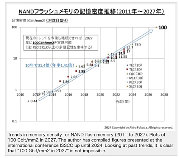 Vývoj by tak postupne znamenal zvýšiť hustotu matrice do roku 2027 až na 100 Gb na milimeter štvorcový. Výsledkom toho by bolo 1000 pamäťových buniek na takto malom priestore. Počet vrstiev sa kontinuálne zvyšuje, o čom svedčia napríklad plány iných výrobcov v postupnom uvádzaní čoraz objemnejších modelov.