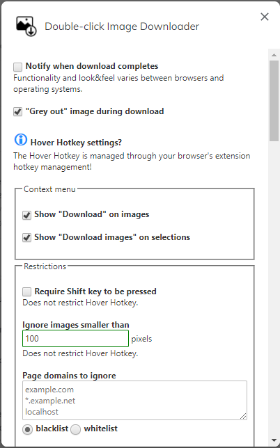Doplnok Double-click Image Downloader vám celý proces trochu zjednoduší a najmä sa vďaka nemu vyhnete kontextovému menu. Doplnok má množstvo nastavení a jedno z nich je aj tzv. plávajúce tlačidlo. To sa bude umiestňovať na obrázku len ak budete myšou v oblasti, ktorú ste vybrali na zobrazovanie tohto tlačidla.