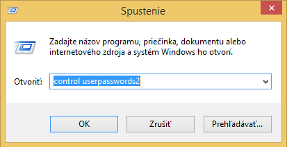 Stačte klávesovú skratku Win + R, čím vyvoláte okno spustenia programov. Zadajte do neho názov control userpasswords2 a potvrďte ho enterom alebo kliknite na tlačidlo OK.