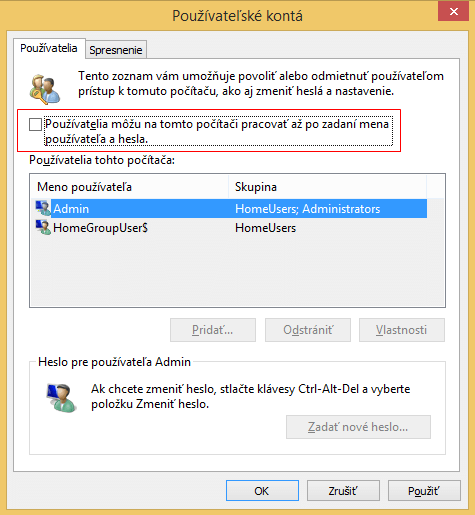 V otvorenom okno správy používateľských kont následne stačí vybrať váš účet a zrušiť zaškrtnutie políčka Používatelia môžu na tomto počítači pracovať až po zadaní mena používateľa a hesla. Svoju voľbu potvrďte tlačidlom OK. Pri nasledujúcom štarte Windows sa už prihlasovacia obrazovka nezobrazí a systém nabehne priamo na pracovnú plochu.