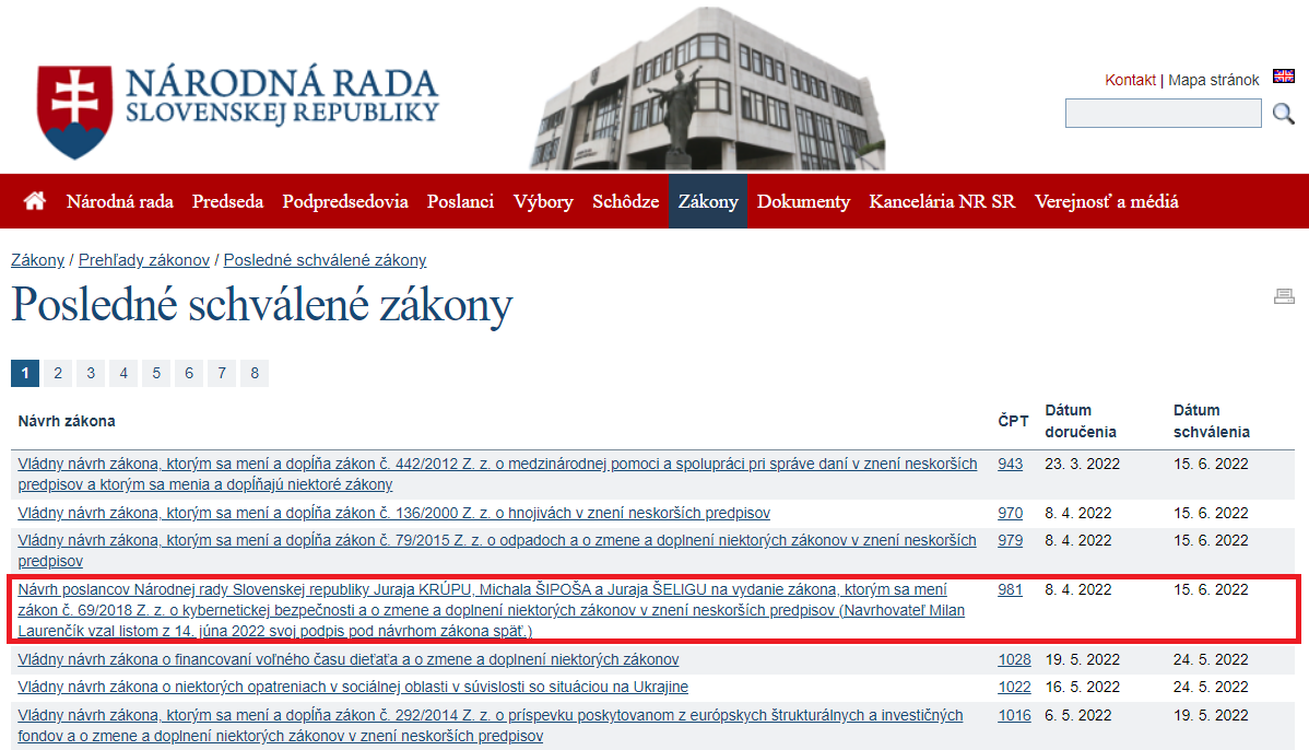 Národná rada Slovenskej republiky schválila doplnenie pôvodného zákona o kybernetickej bezpečnosti a predĺžila tým možnosť blokovať šírenie dezinformácií a škodlivého obsahu. Zo strany vlády ide o prostriedok pri vedení hybridnej vojny. Dôvodovú správu nájdete na tomto odkaze. Potrvá do 30. 9. 2022. Z našich odhadov nepredpokladáme, že toto je finálny termín „dočasného“ riešenia.