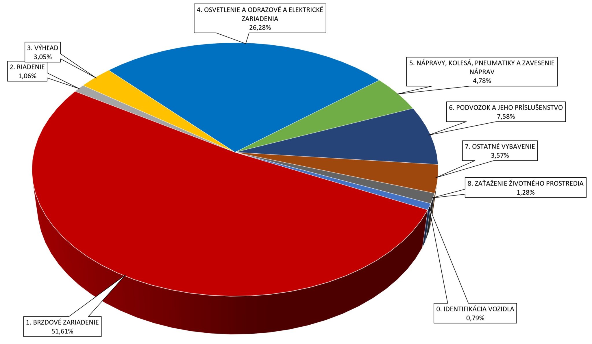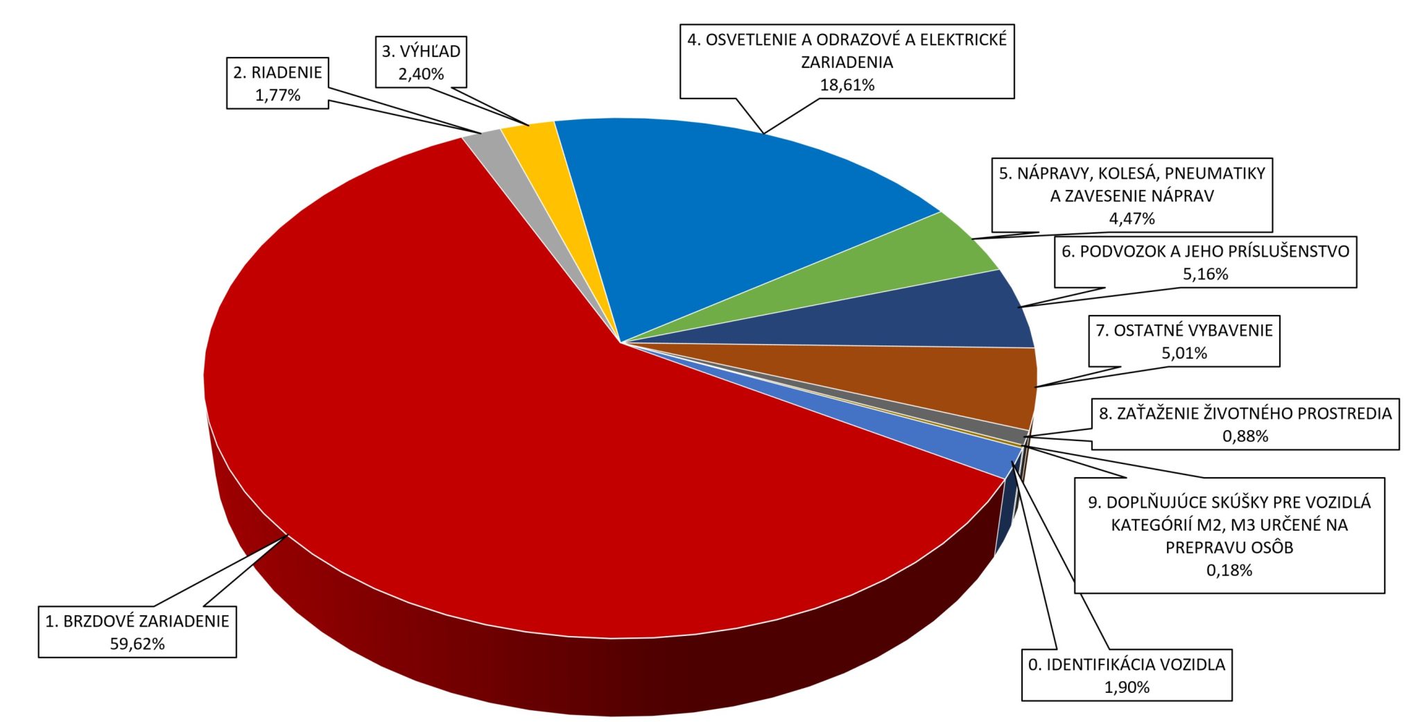 Keď sa pozrieme na štatistiky zistených vážnych a nebezpečných chýb v prípade ľahkých vozidiel (kategórií L, M1, N1 a O2) pri pravidelných technických kontrolách v roku 2021, najväčším problémom sú brzdové zariadenia, potom osvetlenie a podvozok s príslušenstvom. Brzdy pritom tvoria viac ako 51 percent zo zistených závažných nedostatkov.