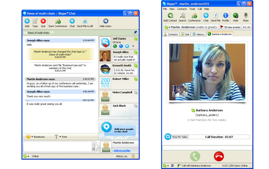 Nie za tisíc eur, ani sto, ale úplne zdarma (odhliadnuc od poplatku za internetové pripojenie). Sprvu šlo len o telefonické spojenie, ako nadstavbu textovej komunikácie, avšak k nej sa časom pridala očakávaná možnosť video prenosu. Počítače na to boli so svojimi monitormi, reproduktormi a mikrofónmi už plne pripravené.
