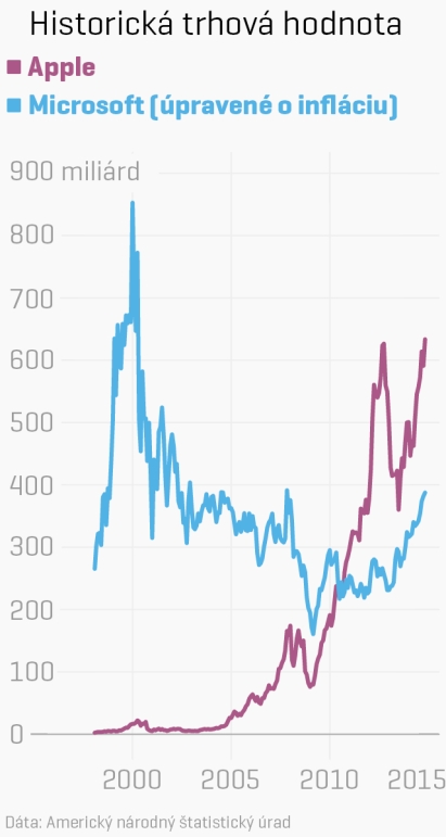 Trhová hodnota Apple tvorí dve tretiny hodnoty Microsoftu v 90. rokoch