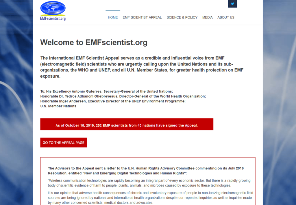 V súvislosti s touto problematikou je nemožné nespomenúť hnutie EMFscientists, ktoré v posledných rokoch stojí za verejnými výzvami v súvislosti so škodlivosťou mobilných sietí a Wi-Fi. Najnovšie ide o medzinárodnú výzvu na moratórium výstavby 5G sietí (5G appeal), zo septembra 2017. Výzva sa behom rokov 2018 a 2019 opakovane objavovala v najrôznejších médiách s provokatívnymi a obočie zdvíhajúcimi titulkami, ako „Vedci z celého sveta žiadajú zastavenie budovania 5G sietí“, či rovno „Vedci a doktori sa dožadujú moratória na stavbu 5G sietí, o ktorej bolo dokázané že je pre ľudí škodlivá“.