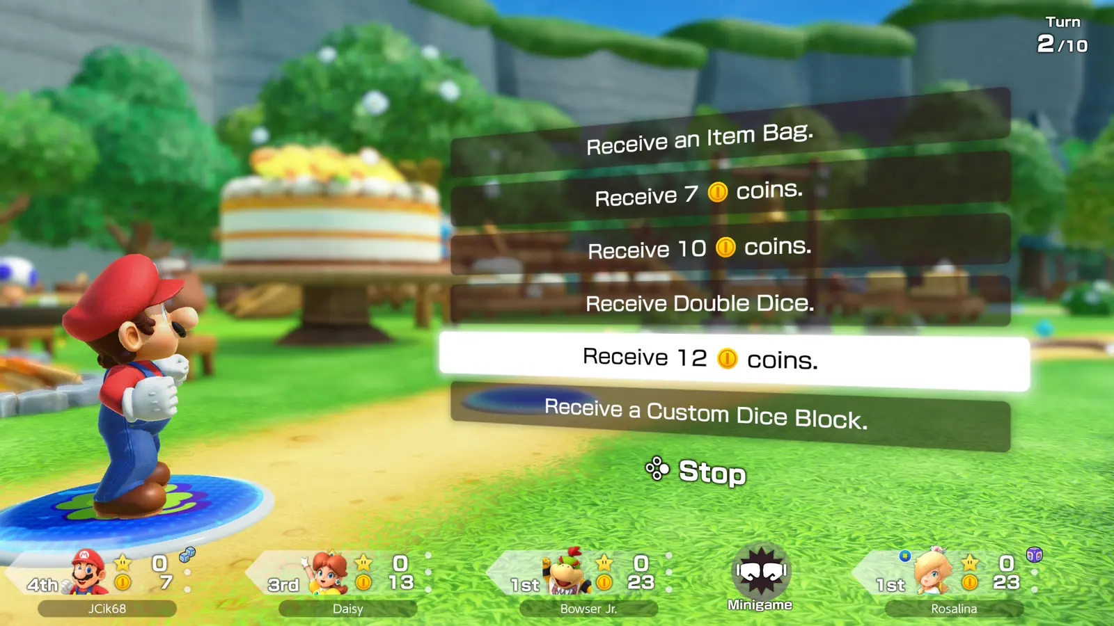 Aj keď si nastavíte najkratšiu verziu Mario Party s desiatimi ťahmi, treba počítať s tým, že hra bude trvať hodinu až hodinu a pol. Výborné je, že hra sa po každom kole uloží, takže sa k nej môžete vrátiť aj inokedy a dohrať ju.