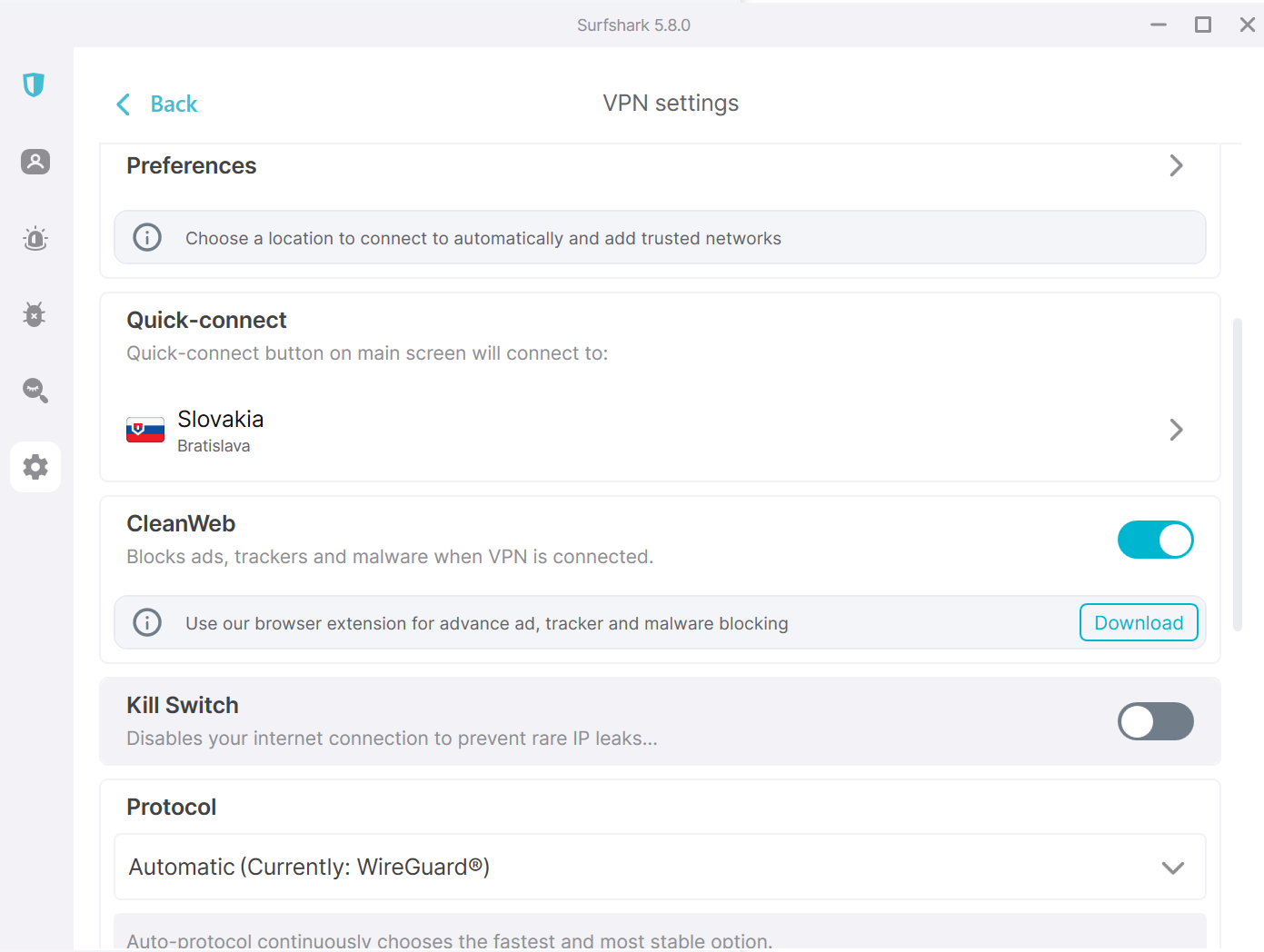 Využívanie funkcie na blokovanie reklám nie je podmienené pripojením k VPN serveru. Zaujímavosťou na kombinácii aplikácie a doplnku je to, že môžu fungovať nezávisle. Operačný systém môžete pripojiť k jednému VPN serveru. Prehliadač sa dá nastaviť na pripojenie k inému serveru typu VPN. Aj tu platí, že na využitie CleanWeb nemusíte byť pripojení k VPN. Či už ide o aplikáciu Surfshark alebo doplnok pre internetové prehliadače.
