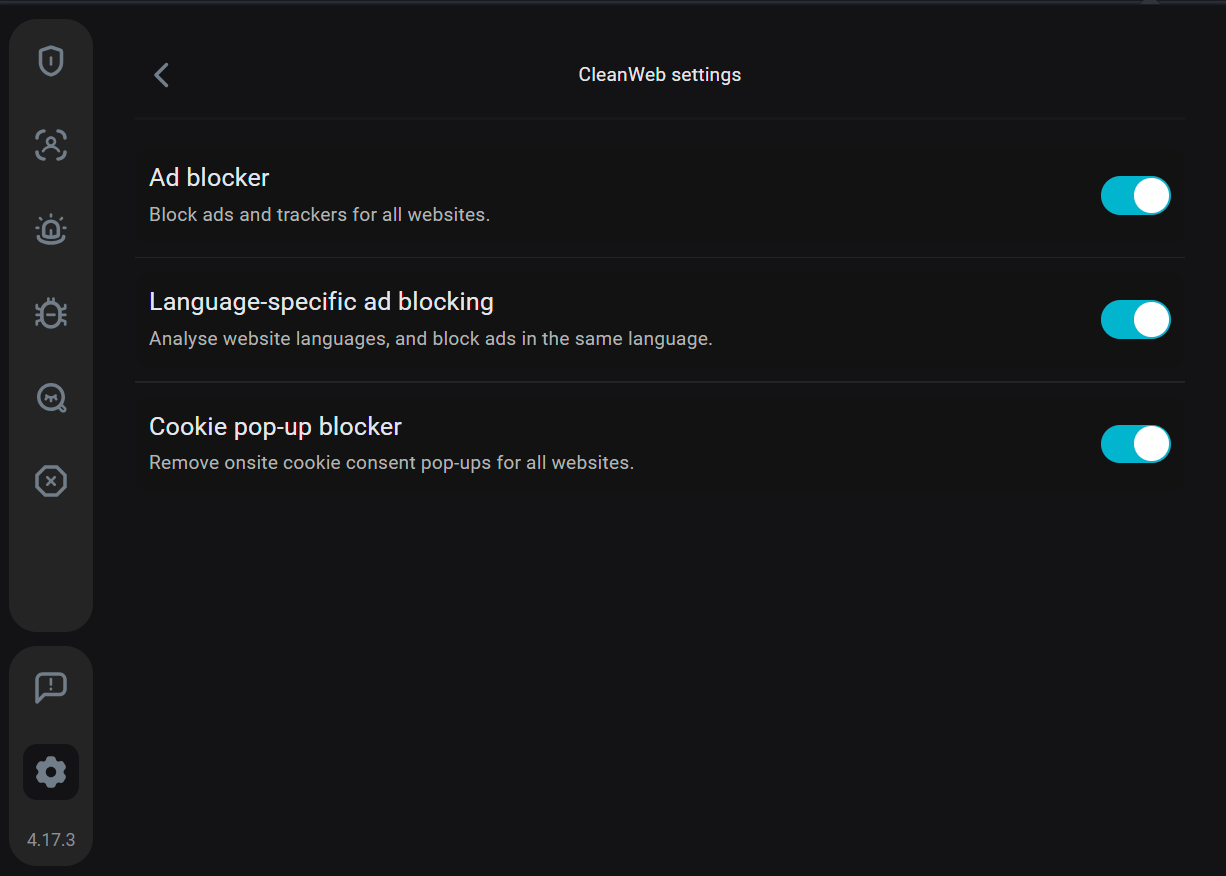 Vhodným spôsobom, ako tomu zabrániť a ochrániť svoje súkromie, je použiť špecializovanú službu s doplnkom pre blokovanie reklám. Aplikácia Surfshark okrem bezpečného pripojenia do internetu obsahuje špecializované nástroje na ochranu vášho súkromia. Nie je to samozrejmosťou a aplikácie tohto typu nezvyknú mať podobné nástroje. Surfshark však ide ešte ďalej a obsahuje funkciu, ktorá chráni celý systém, ale aj vybraný prehliadač.