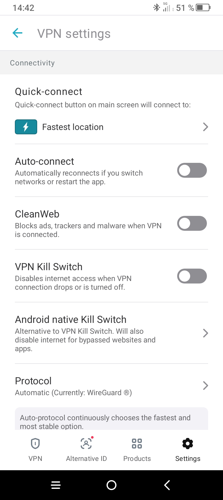 Dôvodom, prečo použiť špecializovanú aplikáciu sú možnosti, ktoré ponúka. Na VPN sa pripojíte cez najnovší a najmodernejší protokol WireGuard. Samozrejmosťou je podpora ďalších protokolov v prípade akýchkoľvek komplikácií.