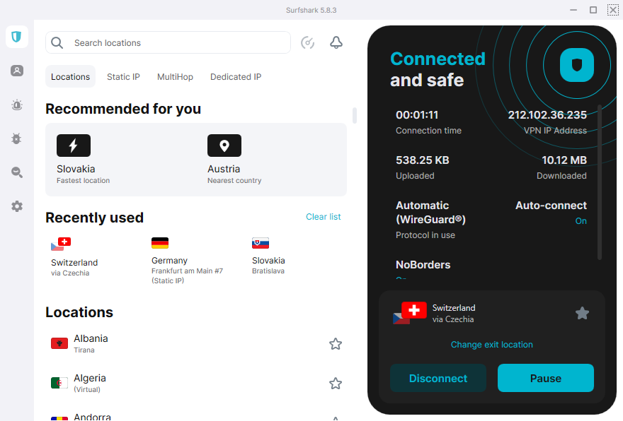 Avšak ak cestujete, chcete práve opačný proces a množstvo služieb môže byť v zahraničí blokovaných. Potrebujete sa teda navonok identifikovať, akoby ste boli stále na Slovensku. S touto službou je to hračka. Na základe vybratého servera a krajiny budete po pripojení navonok vystupovať z vami pripojenej lokality.