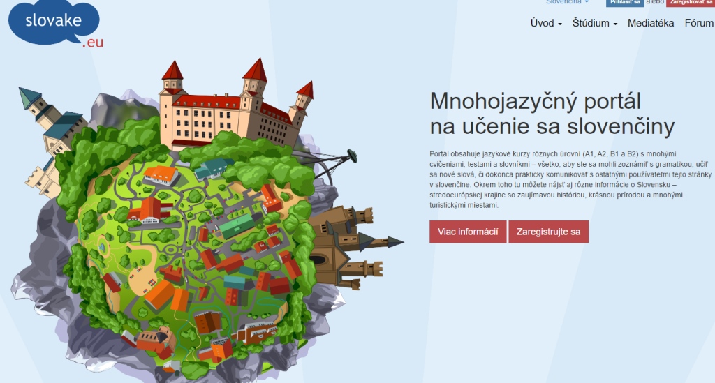 Slovake.eu je bezplatným mnohojazyčným portálom určeným predovšetkým pre cudzincov na výučbu slovenského jazyka. Jeho tvorcami sú slovenskí esperantisti zo združenia Edukácia@Internet v spolupráci s medzinárodným tímom. Momentálne je na ňom zaregistrovaných viac ako 48-tisíc ľudí. Web funguje v 13 jazykoch a slovenčinu sa na ňom možno učiť od úrovne úplného začiatočníka (A1) až po pokročilého (B2). Súčasťou webu sú efektívne cvičenia a testy, ktoré prevedú záujemcov základnou gramatikou, rozšíria im slovnú zásobu, preskúšajú ich z lekcií, ktoré stihli prebrať…Vďaka nim sa postupne naučia komunikovať v slovenskom jazyku nielen s ostatnými používateľmi stránky Slovake.eu, ale aj s ľuďmi vo svojom okolí. Okrem iného ich portál prevedie základnými faktami o Slovensku – dozvedia sa niečo z histórie, z oblasti prírodných krás, turistických miest a atrakcií.