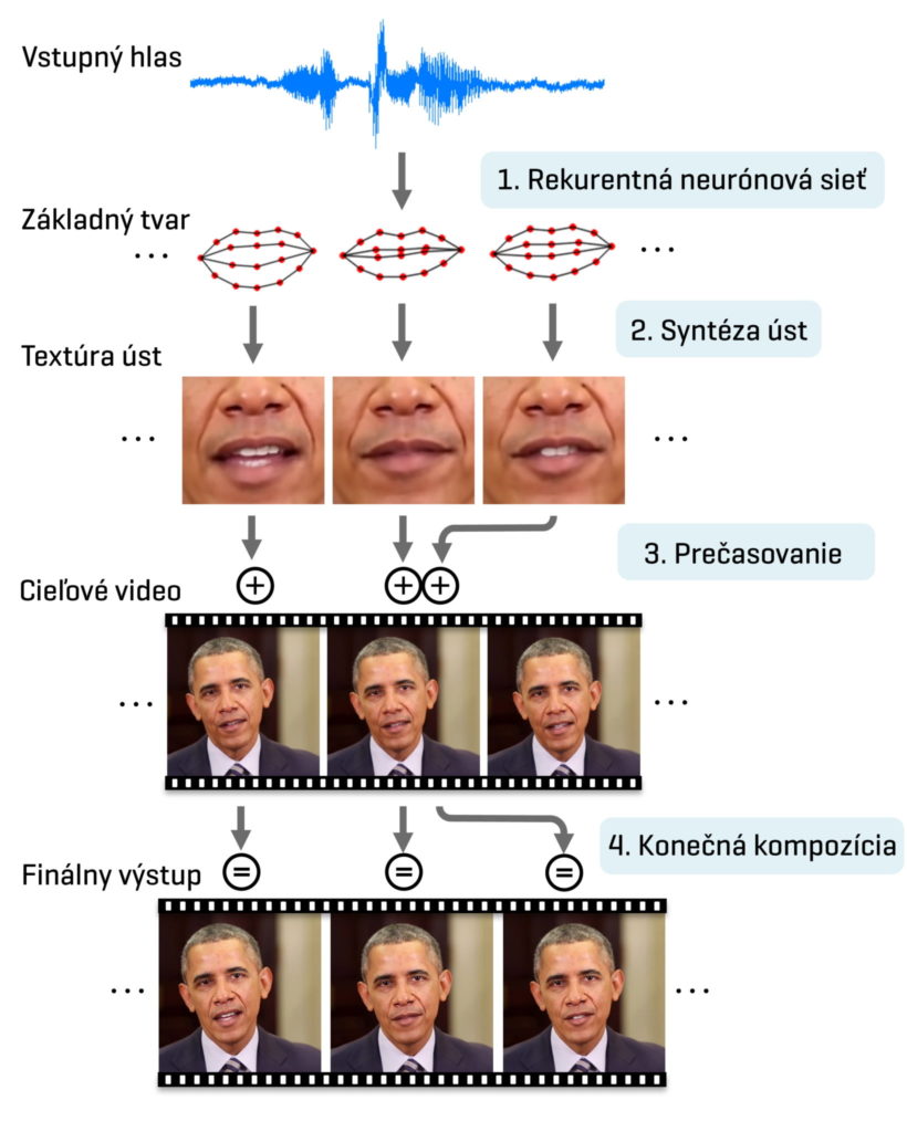 Produkciu videa v takejto kvalite, takmer na nerozpoznanie od originálu, by nezvládol žiadny ľudský animátor, ani imitátor, ktorého tvár by sme mapovali. Výsledok práce výskumného tímu generoval systém umelej inteligencie, založený na metódach tzv. hlbokého učenia. V jadre technológie sa nachádza rekuretná (zvratná) neurónová sieť, ktorá bola na niekoľkých hodinách videozáznamu Baracka Obamu dlhodobo trénovaná k tomu, aby si všímala špecifickú mimiku a pohyby hlavy a celého tela pri vyslovení jednotlivých slov a slabík a takisto jeho vetnú skladbu.