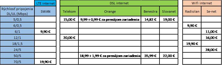 Služba | Max. dosiahnuteľná rýchlosť | Mesačná cena služby (bez DPH) s DPH |
